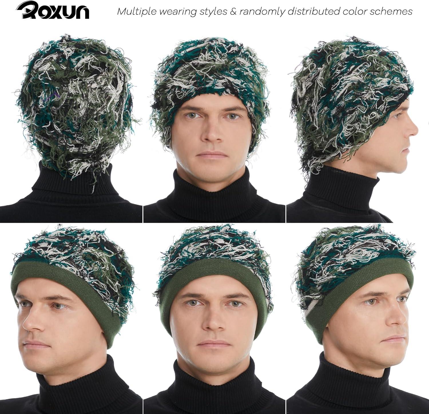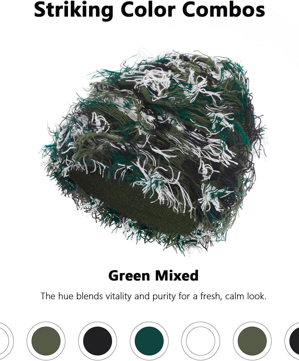 Distressed Beanie, Fuzzy Shiesty Yeat Warm One Size for Men Women Winter Fashion Knit Cap(Green Mixed)